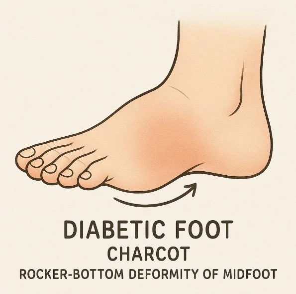 What happens: Neuropathy weakens the bones. Small fractures occur without pain. Walking continues, the bones collapse, and the foot deforms¹².