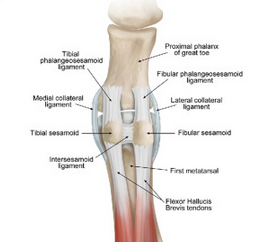 The sesamoids act like tiny kneecaps for the big toe. They bear load during push off and can get irritated with forefoot pressure and calf tightness.¹